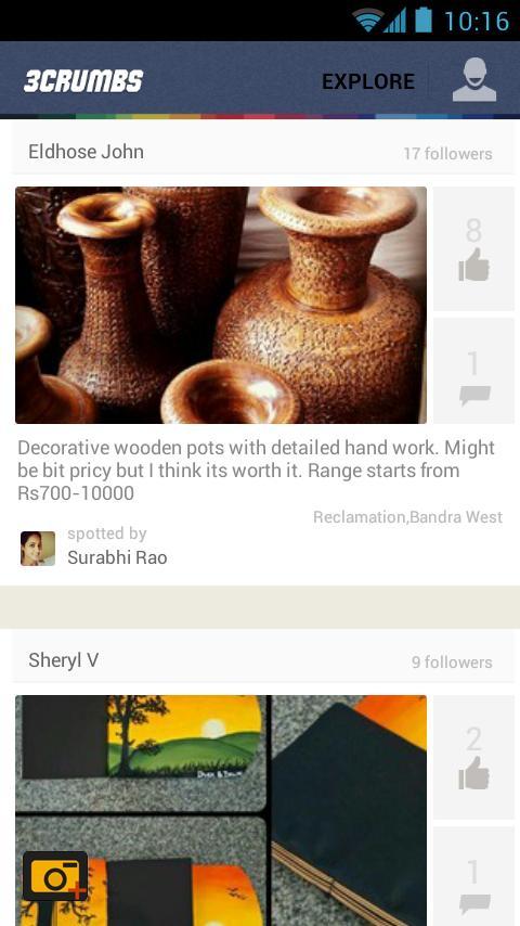 Best things, best prices at best places around you, recommended by your friends and locals with similar interests. Hobby stuff,Thrift , ingredients, apparel, automobile parts, fancy home decor etc. anything that is uniquely spotted by you.