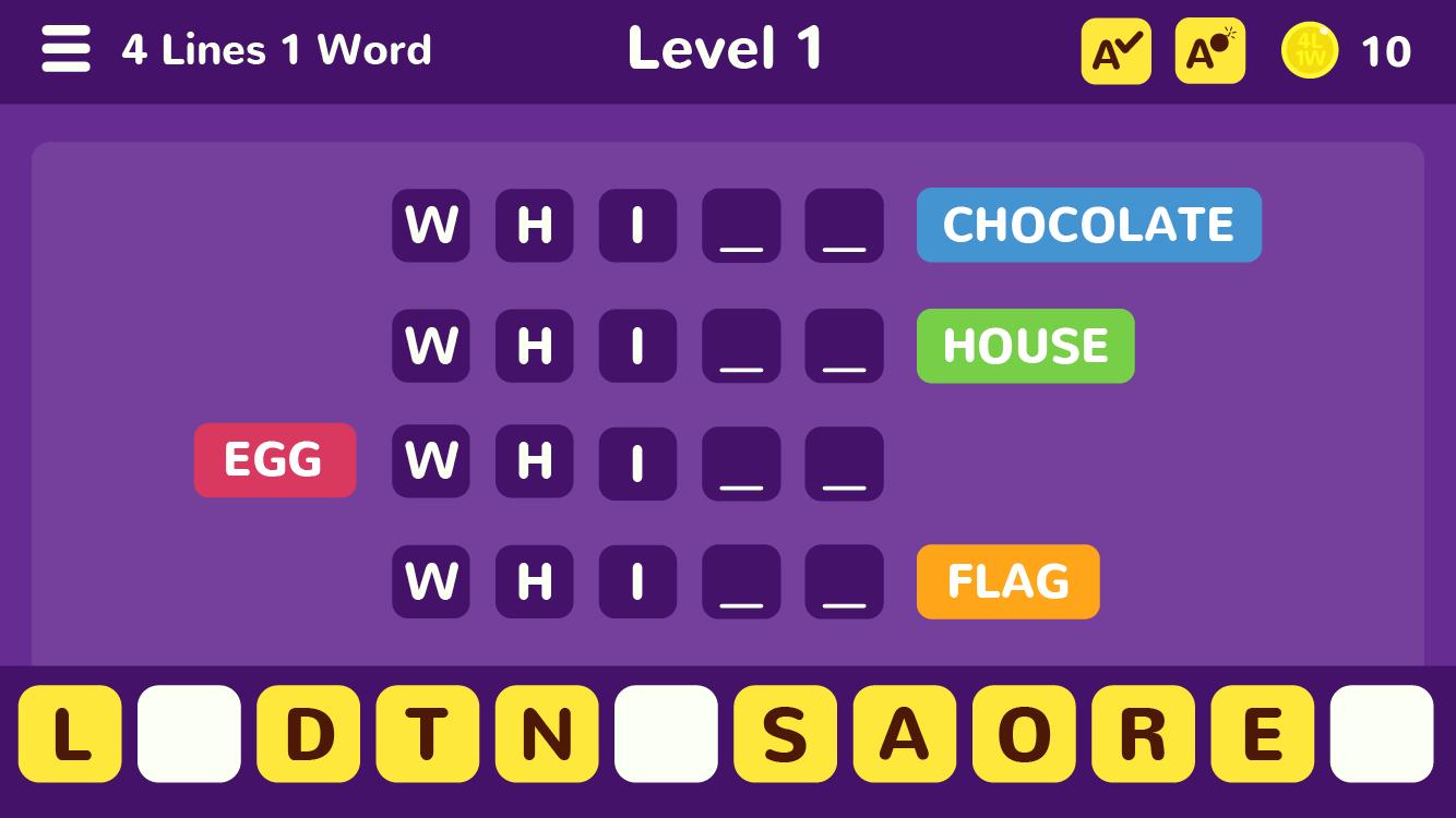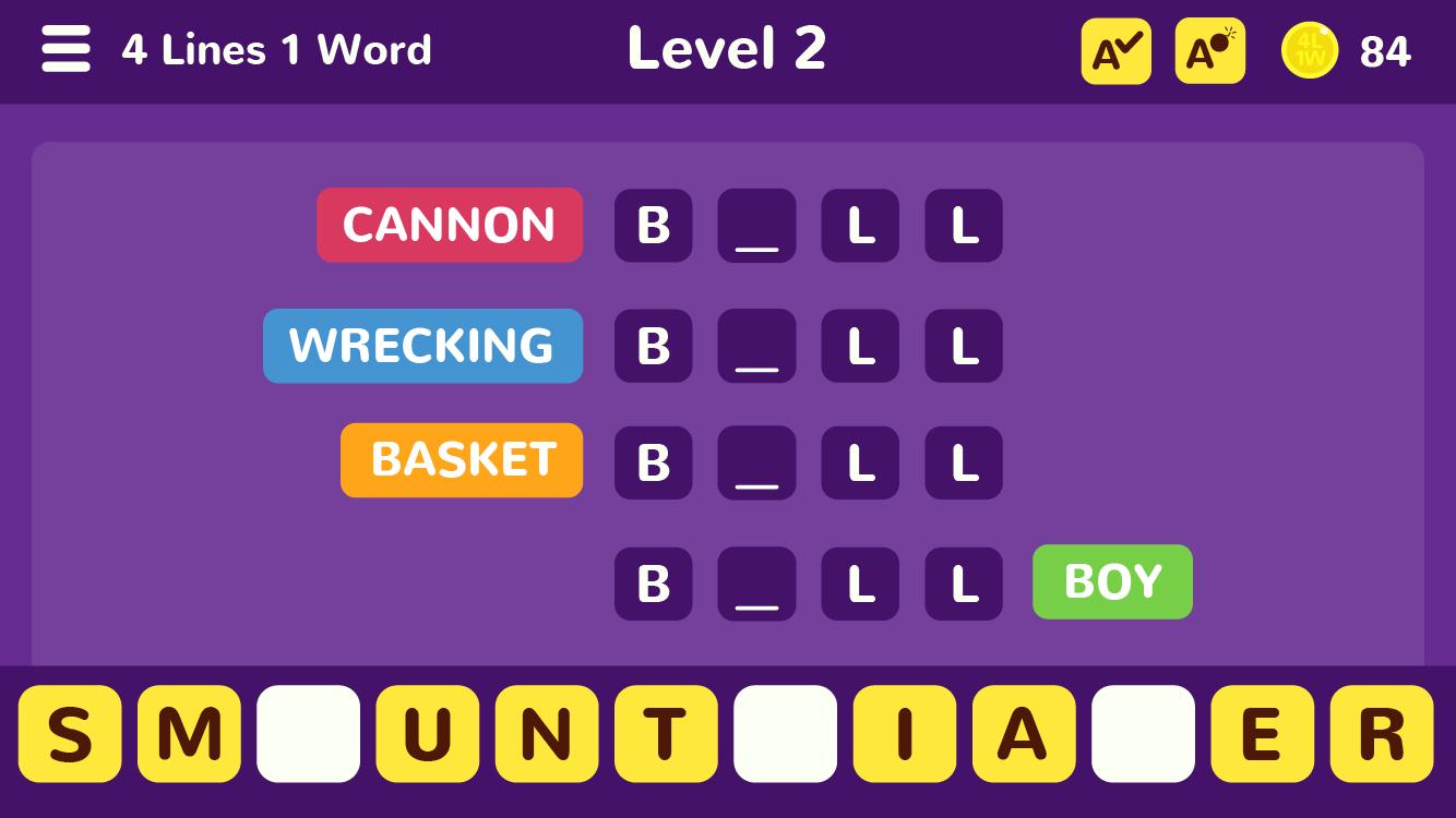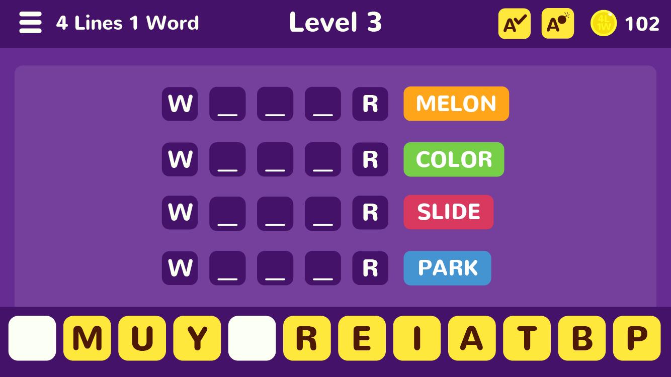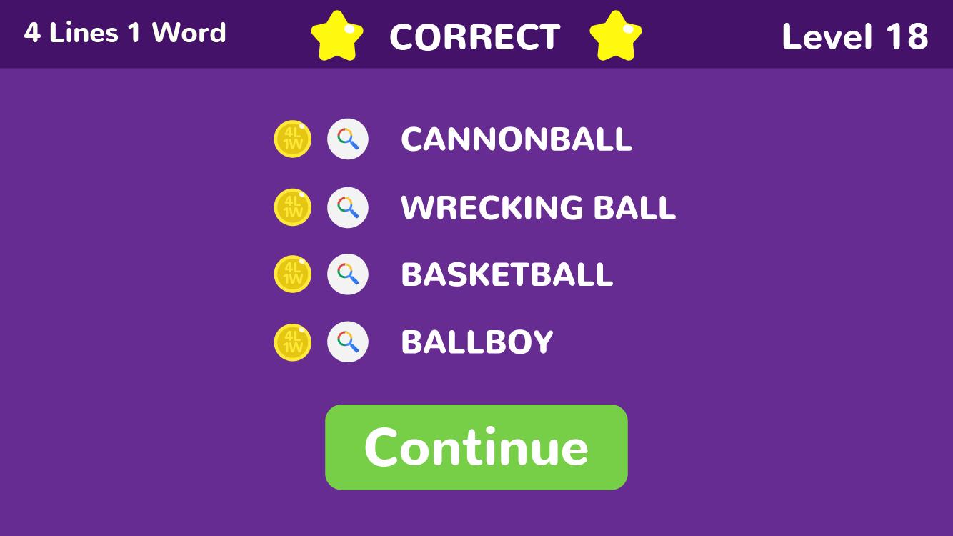 4 Lines 1 Word is a free trivia word game. Fun game for word nerds. One word is all you need!