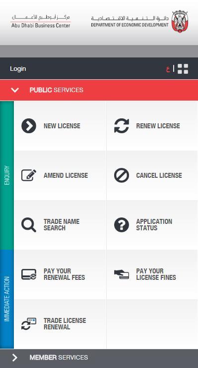 Abu Dhabi Business Center of the Department of Economic Development launches this Application with a view to provide a wide range of e- services related to applications of trade licenses. These services include:
