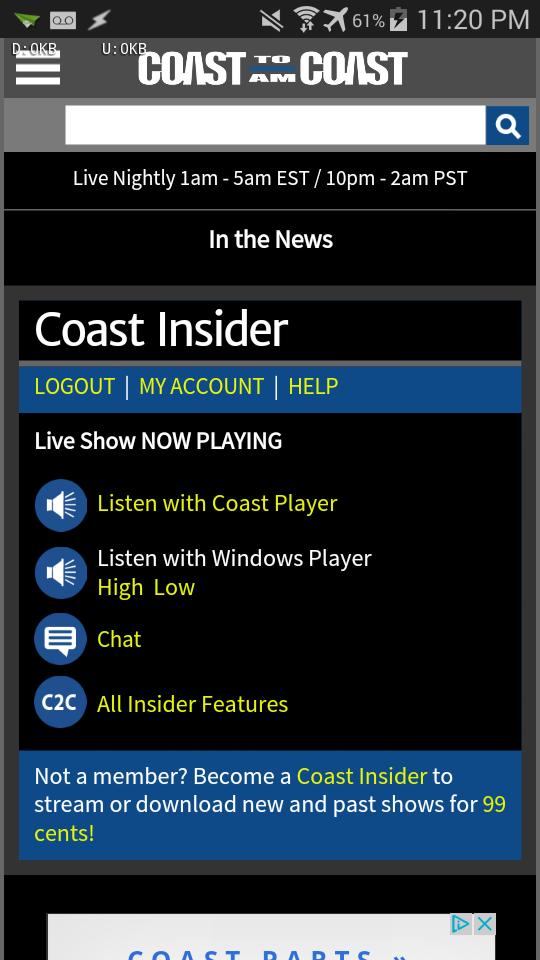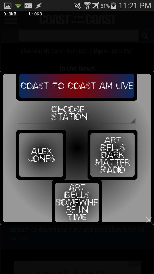 A quick shortcut to Coast to Coast Am, Info Wars, & Art Bell News/Audio Streams
