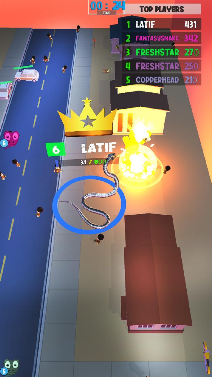 Smooth and easy controls allow you to handle your anaconda effortlessly and destroy everything easily as big wild snake. Beat your Highest acore in this snake city simulator.