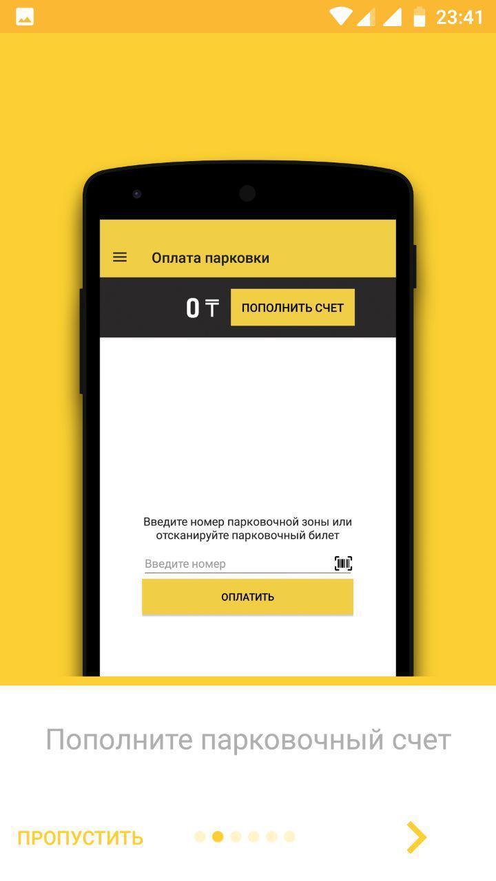 Application for searching and paying for parking in Almaty.