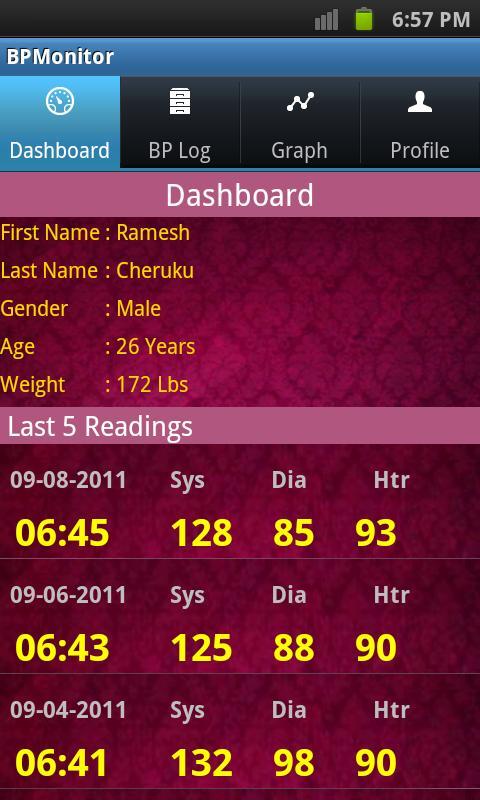 تطبيق BPMonitor هو الحفاظ على مسار من انقباضك وانبساطي ومعدل ضربات القلب.