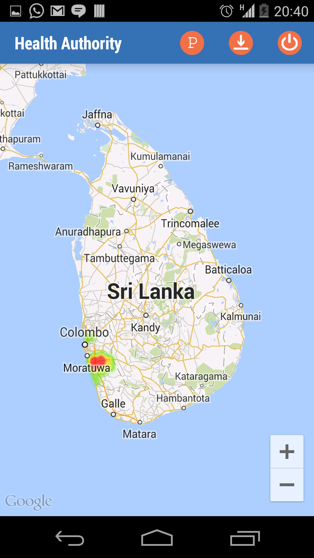 يمكن استخدام Dengue Ta.lk من قبل السلطة الصحية لعرض انتشار المرض في شكل خريطة حرارة Google.