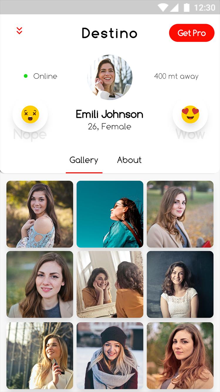 Destino هو تطبيق مواعدة يسمح للمستخدم بإعطاء WOW للأشخاص من حولهم باهتمامات مماثلة. يتيح لك مقابلة أشخاص جدد ، وتوسيع شبكتك الاجتماعية ، أو مقابلة السكان المحليين عند السفر ، أو تعيش في الوقت الحالي ، لقد وصلت إلى المكان الصحيح. إنه قالب تطبيق Android مثالي وقالب تطبيق iOS لتطبيق المواعدة والدردشة.