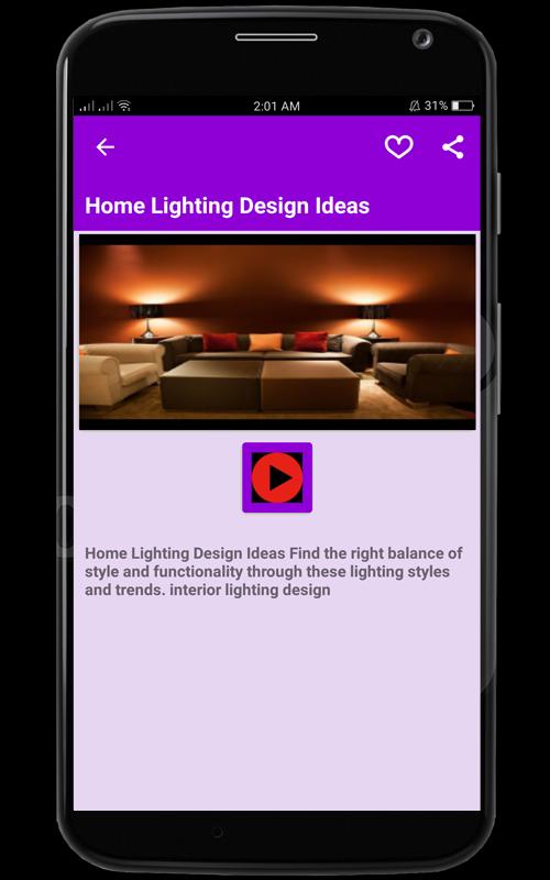 في هذا التطبيق ، ستجد معظم مقاطع الفيديو التي تشاهد Home Lighting Ideas الجميلة. تتكون قاعدة البيانات من Home Lighting Ideas باللغة الإنجليزية. لقد جمعنا بعض مقاطع الفيديو الممتازة في جودة HD لجميع Home Lighting Ideas . يمكن أن يكون تنظيف منزلك ساحقًا. توفر لك المقالات التالية الأساسيات لتصميم مخطط إضاءة جديد أو ببساطة تحديث العنوان الحالي.