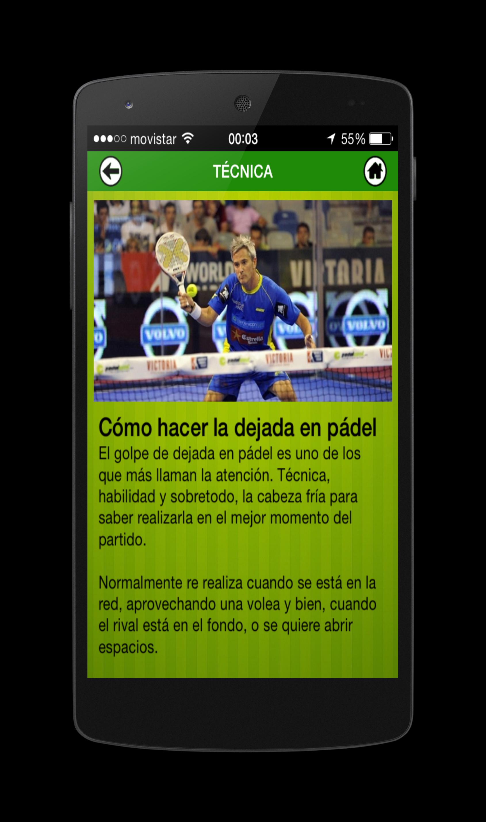 إذا كنت ترغب في البدء في تشغيل المجداف ، لكنك لا تعرف قواعدها أو كيف تمارس هذه الرياضة ، أو لديك بعض الخبرة ولكنك تريد أن تتعلم تقنيات جديدة ، Padel clases y consejos هي تطبيق يمكنك من خلاله الحصول على هذا العالم بالكامل من المستوى الأساسي إلى واحد أكثر تقدمًا. مهما كانت معرفتك ، استشر هذا التطبيق لمواصلة تشكيل يوما بعد يوم.