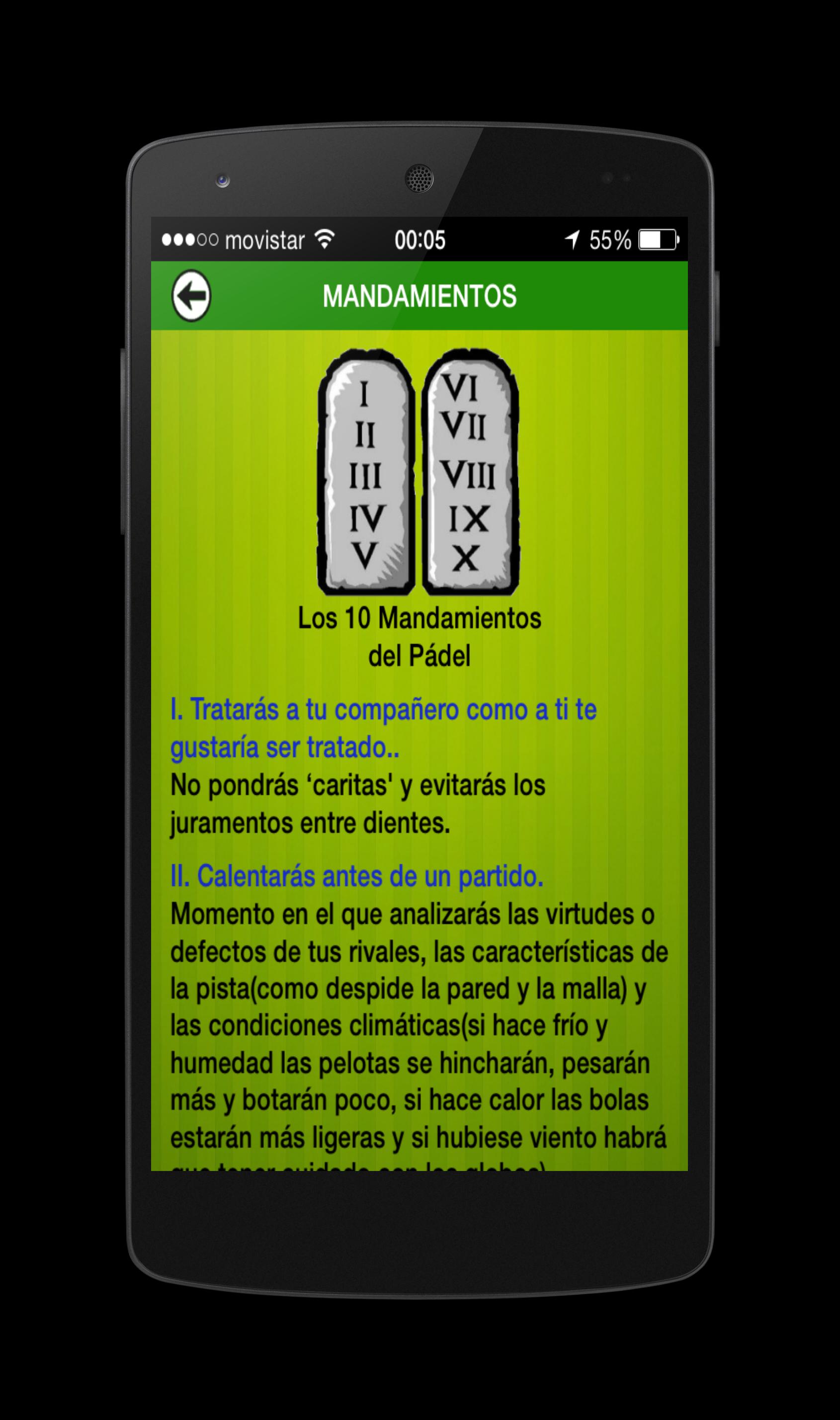 أخيرًا ، وأيًا كان مستواك كلاعب ، يجب عليك أيضًا مراعاة الوصايا العشر لهذه الرياضة التي يسهلكها التطبيق. تهدف جميعها إلى جعل ألعابك أكثر متعة وممتعة ، حيث يكون الشيء الوحيد المهم هو الاستمتاع بالرياضات الرياضية. قم بتنزيل دروس Padel ونصائحها وتديرها لتحسين مستواك شيئًا فشيئًا لتصبح لاعبًا رائعًا.