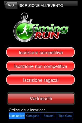 وهو متصل بشكل صارم بالبوابة www. TimingRUN . بعد تحديد ملف التعريف الشخصي الخاص بك (المرة الأولى أو بعد ذلك فقط التغييرات) ، من الممكن التسجيل في سباق الجري ببساطة عن طريق اختيار الحدث. من الممكن أيضًا التحقق من التسجيل واستشارة قائمة المشاركين في الحدث.