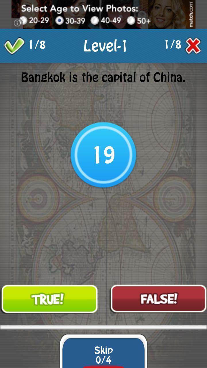 مسابقة حقيقية أو خاطئة المتعة حول الأماكن في العالم. لاعب واحد ومتعدد