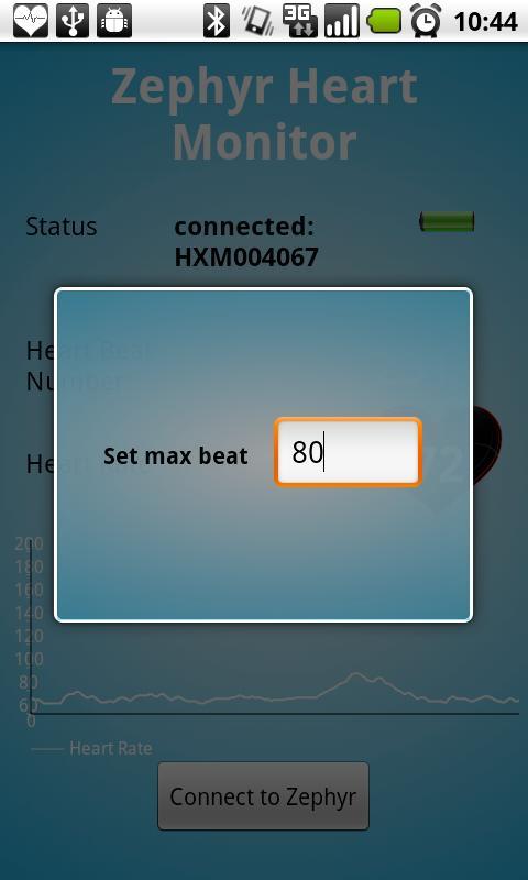 هذا تطبيق بسيط يساعدك على التحكم في معدل ضربات القلب. يمكنك رؤية معدل ضربات القلب الحالي ، ورسم لتطور النبض الخاص بك ومؤشر للبطارية. يمكنك ضبط دقات قلب حدود وسيقوم هاتفك بتنبيهك إذا قمت بتمريره. (الويب: http://altair.lcc.uma.es:8080/zephyrheartmonitor/)
