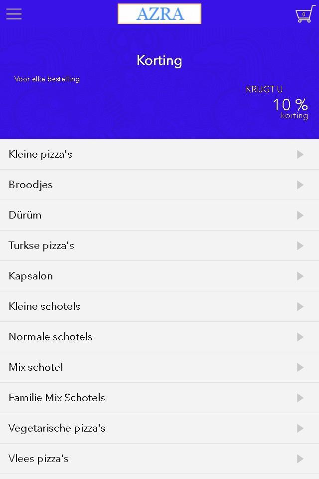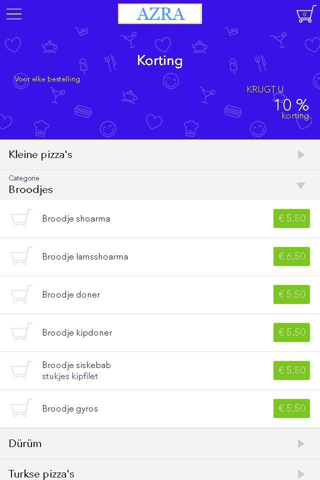The Azra app is made to place an order more easily and faster through a simple menu. In the menu you can opt for popular dishes, but you can also prepare a menu yourself.