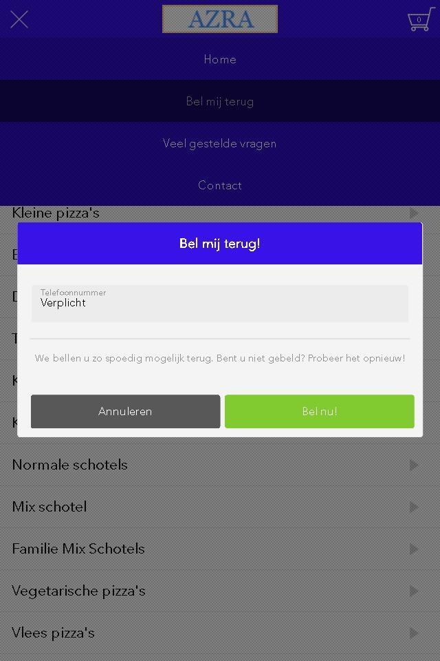 Do you have a question and/or comment about a certain dish and do you want to be called back by us? You can do this by pressing the '' Call me '' button and you will be called back free of charge!