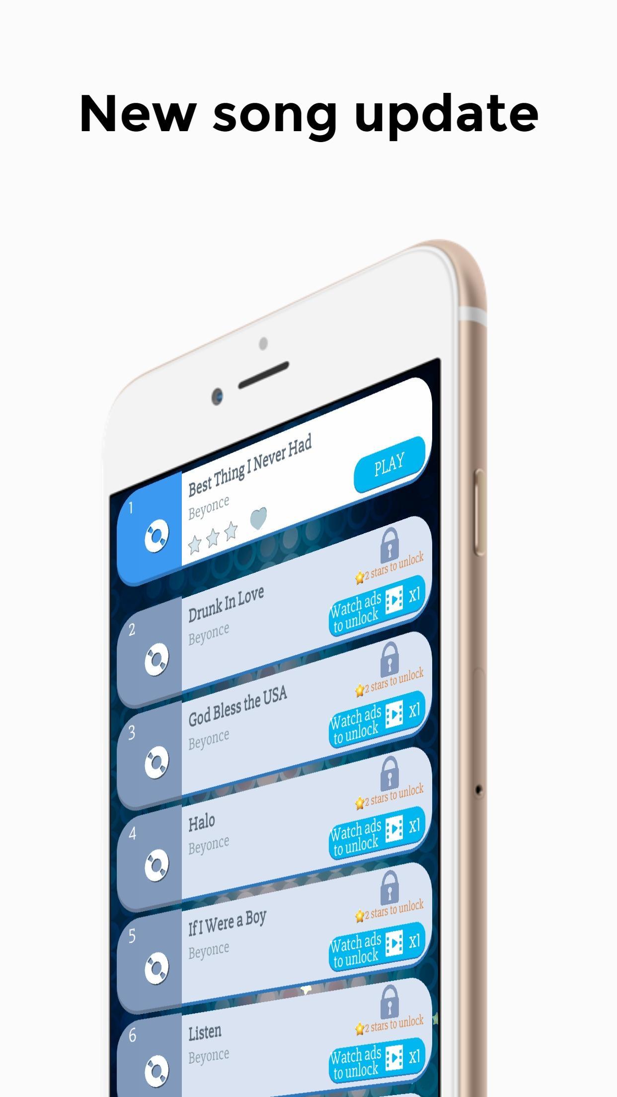 Beyonce Piano Game game is appear in piano game with exactly beats of Beyonce songs. Tap to screen and feel the music