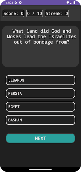 The app also as questions on bible related events like the Christmas and Easter holidays.