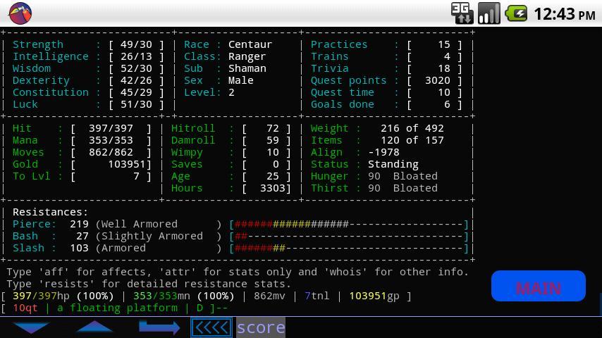 BlowTorch is a basic telnet client that supports the following features that people find helpful for playing MUDs.