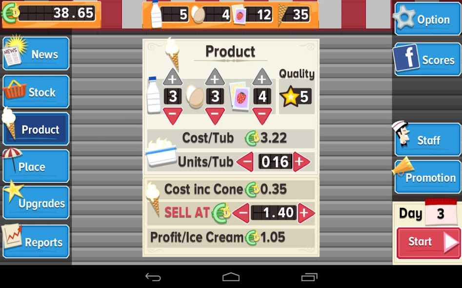 The players can compete with each other, sending their results to Facebook score, which compares them, allowing them to understand how good they are in selling ice cream.