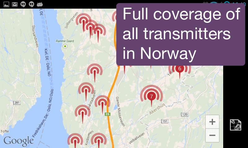 breiband.no coverage app that displays all broadband transmitters in Norway.