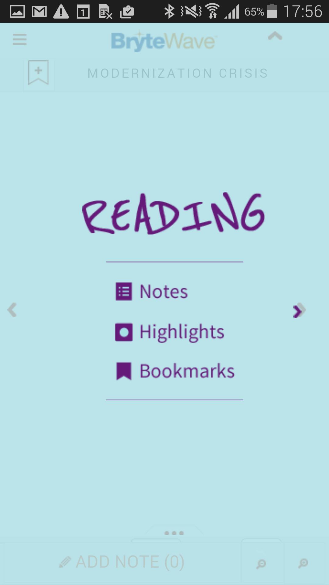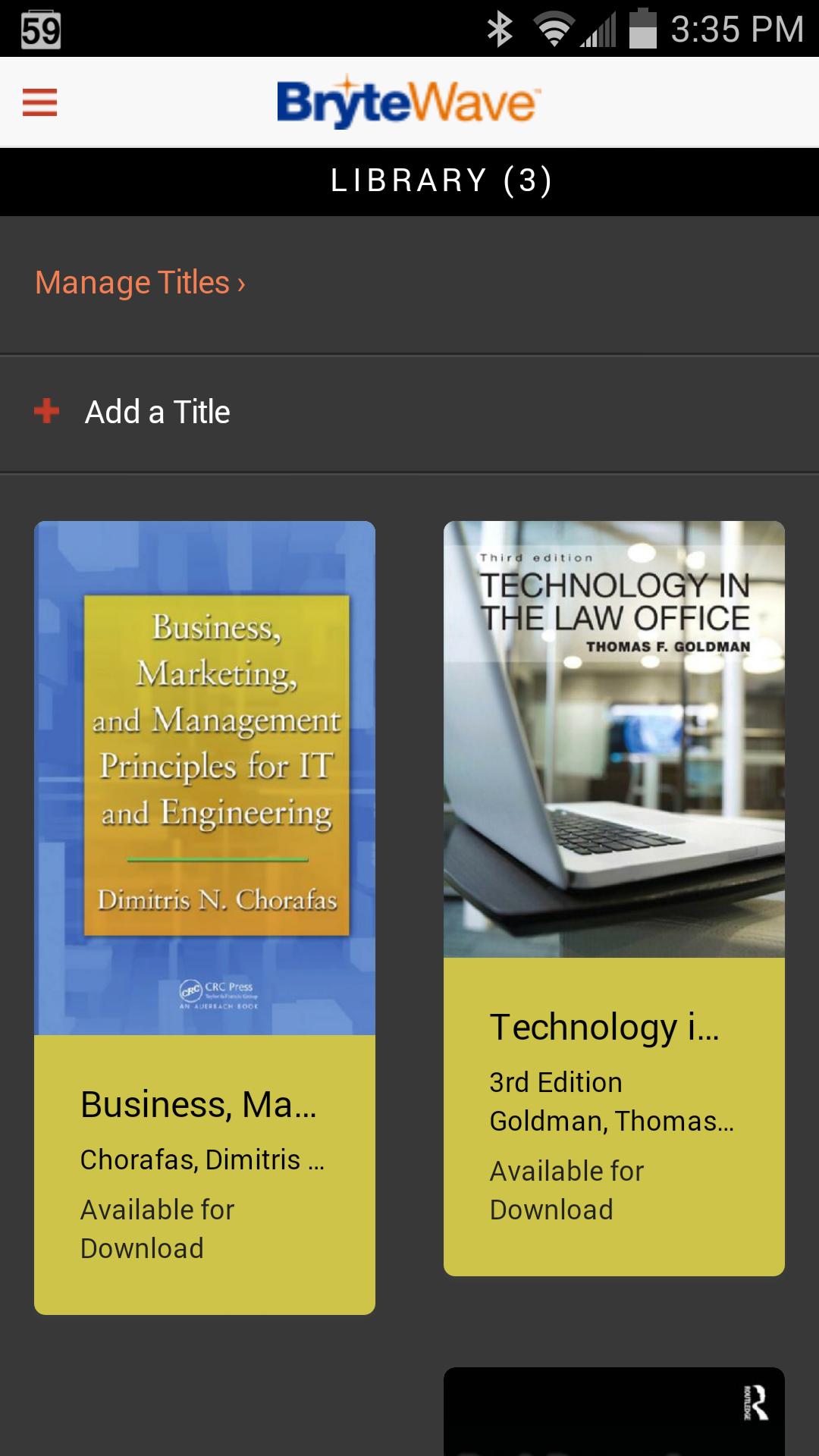 BryteWave is a digital textbook and study tool all in one. BryteWave Reader is a FREE APP designed to access your digital textbooks. Get better organized for assignments and preparing for tests. Now, studying can occur anytime, anywhere with online and offline access to your digital textbooks on your tablet, smartphone, laptop, and desktop.