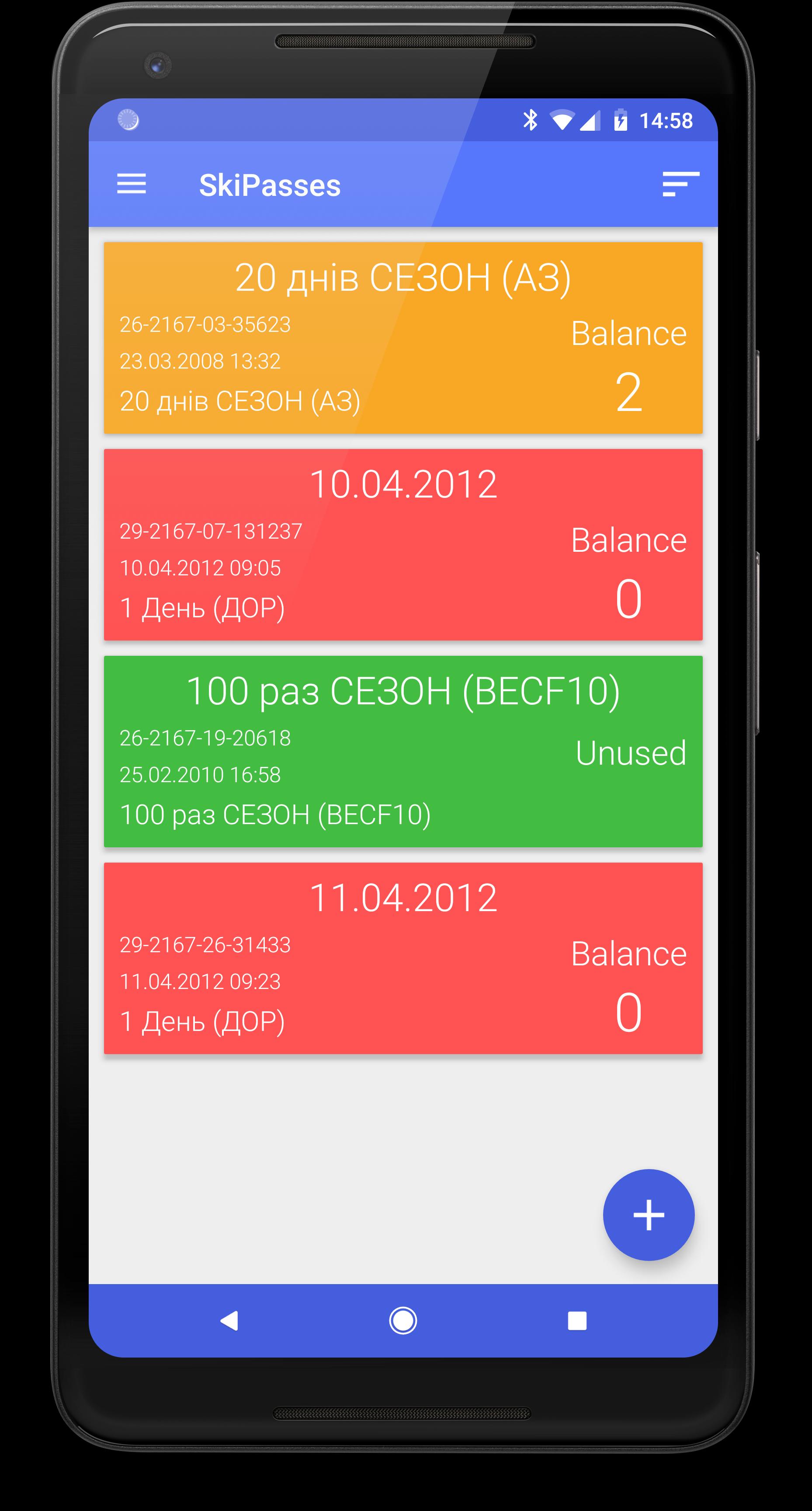 • the ability to scan the skipass or club cards using NFC (in case the card and your phone are equipped with the chip);