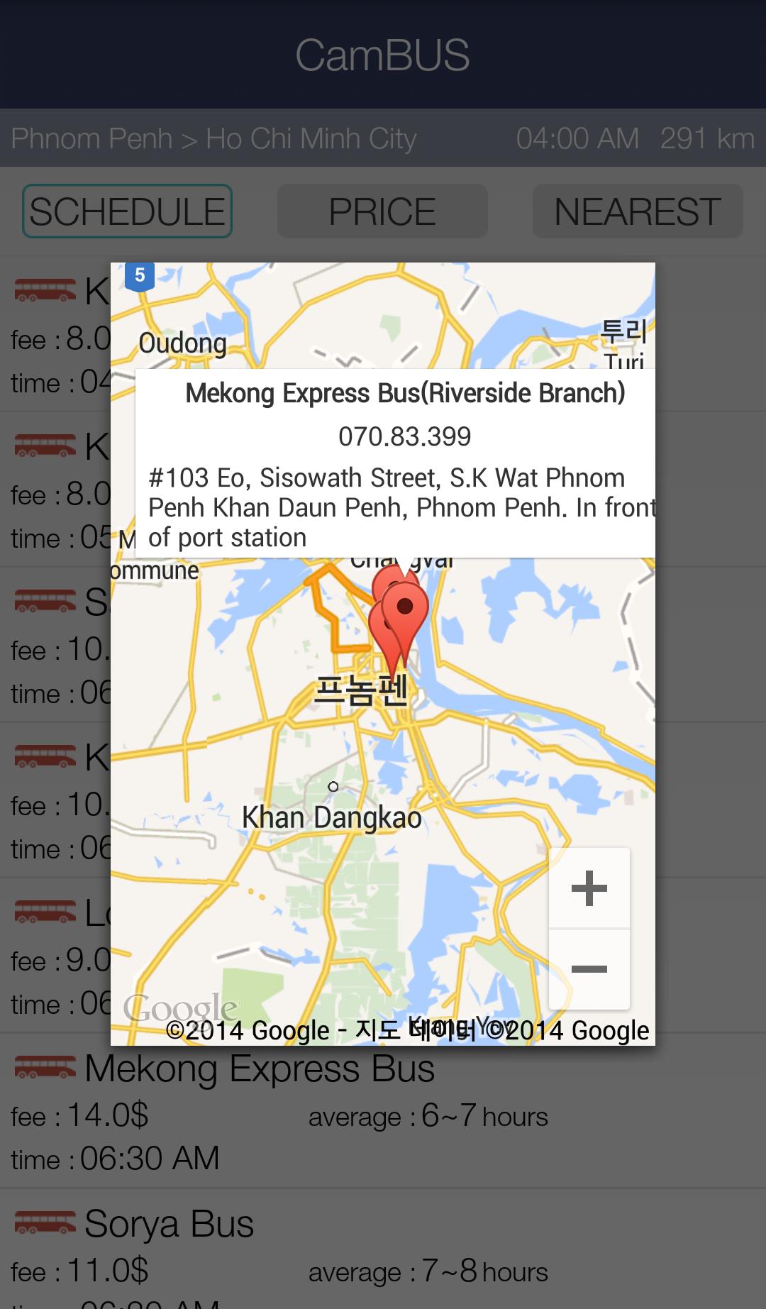- Adress and location of Bus-stop(Phnom Penh only in this version)