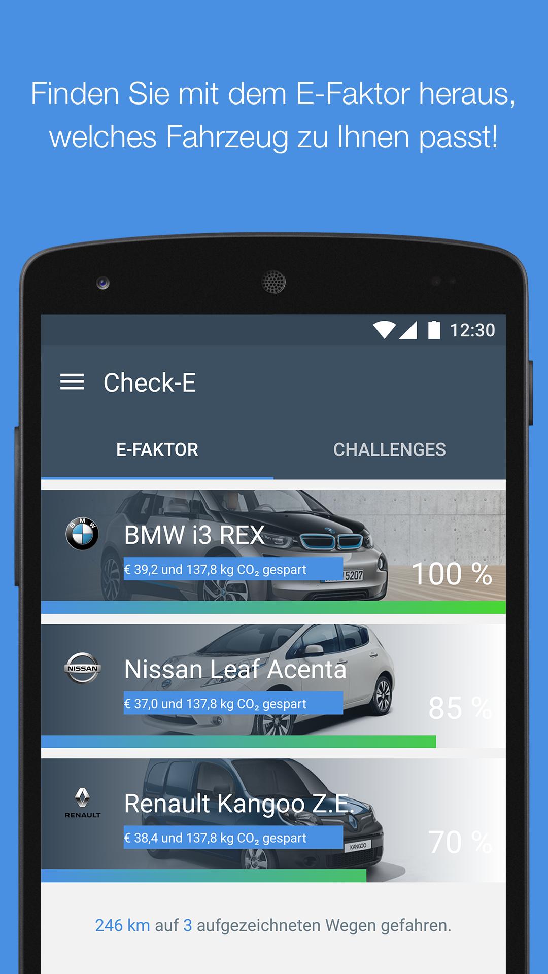 With the tracking app " Check-E " you can easily and easily record your distances covered every day and evaluate them in detail. Based on your collected GPS data, it is automatically determined which electric vehicles currently available are best suited for your personal mobility behavior and therefore fit you. For the test, there is a wide range of electrically operated vehicles-from purely battery-operated electric vehicles to hybrid vehicles, to vehicles with futuristic fuel cell technology-to choose from, all of which are already available on the market today. The newly introduced "e-factor" shows at a glance how much percent of your ways could be mastered in practice with a selected e-vehicle. In addition, the cost and CO2 savings of your favorite electric vehicles are determined compared to the reference vehicle you have chosen with conventional drive. In the challenges you can demonstrate your driver's skills and win attractive prices. After you have successfully performed the tasks, you can take part in the raffle for profits. Among other things, an electric car is waiting for a weekend for the best. The " Check-E " app determines in a playful way whether your driving behavior qualifies as an e-mobileist. An additional feature is also shown where you can find information on the current grants for e-vehicles in Austria and charging points so that you are well prepared for the new mobility world. We hope that you enjoy " Check-E " and bring you closer to the world of e-mobility. The project is financed by the climate and energy fund and (under the direction) of Austrian Mobile Power. The app user/Inn must be of legal age to participate in the raffle.