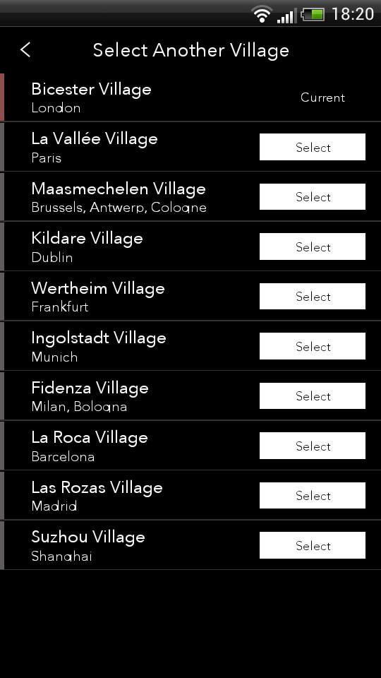 Welcome to the Collection of Chic Outlet Shopping® Villages located near Europe's major cities and, opening in May 2014, China. Discover the Collection of Villages with Bicester Village near London; Kildare Village, Dublin; La Vallée Village near Paris; Las Rozas Village close to Madrid; La Roca Village near Barcelona; Fidenza Village between Milan and Bologna; Maasmechelen Village near Brussels, Antwerp and Cologne; Wertheim Village near Frankfurt; Ingolstadt Village near Munich; and Suzhou Village™ opening in May in Suzhou, China. Shop at more than 900 boutiques of the most coveted international fashion and lifestyle brands – all offering up to 60% off the recommended retail price, and sometimes more, all year round. Whether you're planning a visit to the Village or you’re there already, get more out of your trip with the new Shop Chic app – your essential companion to exploring all the Villages have to offer.