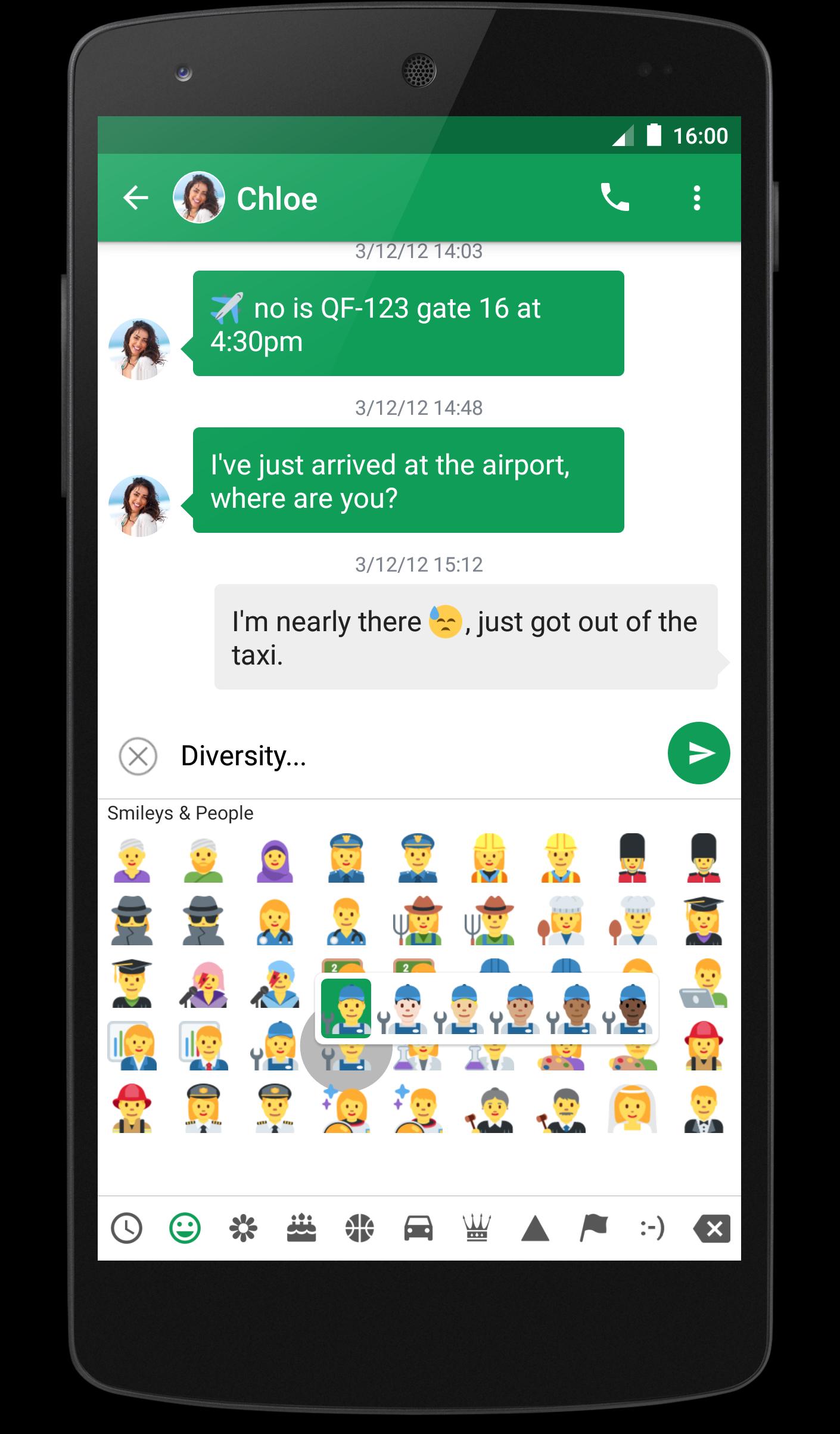 Provides 2900+ of the latest (Unicode 11) emojis including diversity (skin tone) on any Android phone.