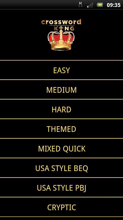 Start your experience by choosing a crossword. Crossword Puzzle King gives you variety you won’t find in similar games, paper or digital. There are ample puzzles from Easy, Medium, Hard, Themed, US Style, Mixed Quick, Cryptic, Kids and No Hints. If those categories don’t tickle your fancy, you’re sure to find a winner in one of our long list of themed crosswords.