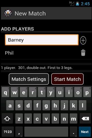 • Configurable match setup including: Leg target, Number of legs, Set based scoring, Double in/out, Treble in/out, Loser throws first / rotate starting player