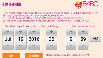 Erfahren Sie, wie Sie eine Brust-Selbstprüfung durchführen und eine monatliche Erinnerung an die B4BC -App festlegen