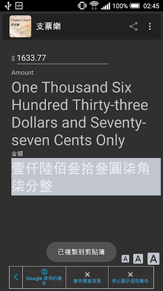 3. Teilenfunktion - Sie können jetzt den übersetzten Scheckbetrag an andere Apps freigeben