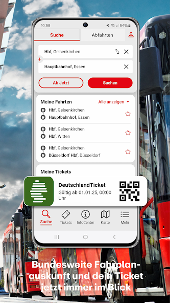 DB NRWay ist der ideale Begleiter für Bus- und Zugfahrer in NRW. In DB NRWay gibt es nicht nur Tickets für die Transport Association oder für NRW, sondern auch ein landesweites Angebot mit dem Deutschland-Ticket, das wie die anderen Tickets mit einem Klick sehr einfach gekauft werden kann. Die DB NRWay -App enthält aktuelle Zeitplaninformationen und weitere Informationen zu den gewünschten Verbindungen. Sie sind also immer auf dem neuesten Stand. Das Ticketsbereich umfasst Tickets aus dem Associations VRR, Westfalentarif, VRS und dem NRW -Tarif. Das Deutschland -Ticket und die NRW -Ticket -Upgrades können auch in DB NRWay von überall und jederzeit von jederzeit gekauft werden. Wenn Sie es einfach und bequem möchten, verwenden Sie den Flugtarif Eezy.nrw für Bus und Zug. Es ist das Spiel des Kindes mit der App: Schauen Sie sich mit einem Klick an und überprüfen Sie erneut mit einem Klick nach der Reise.