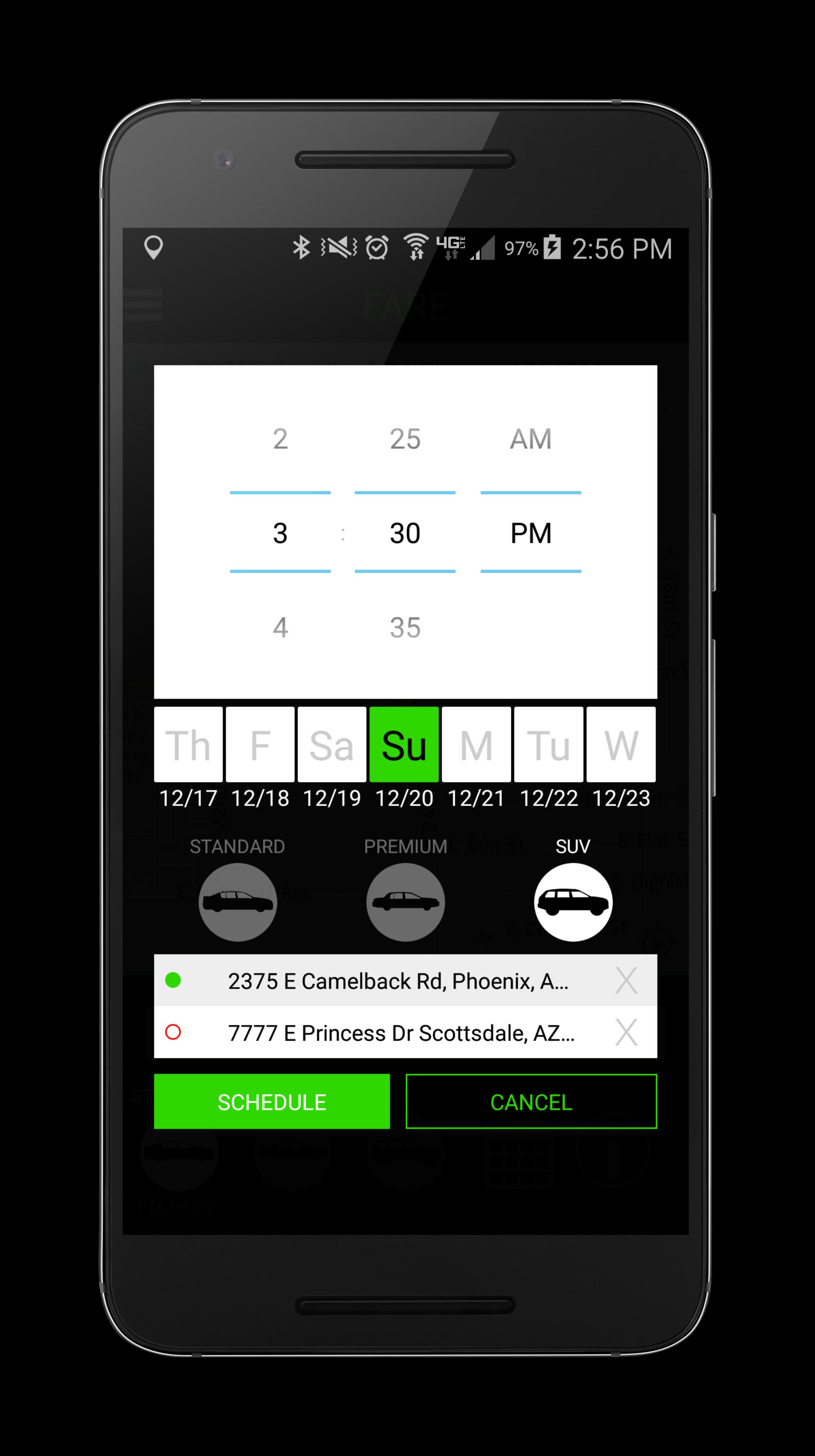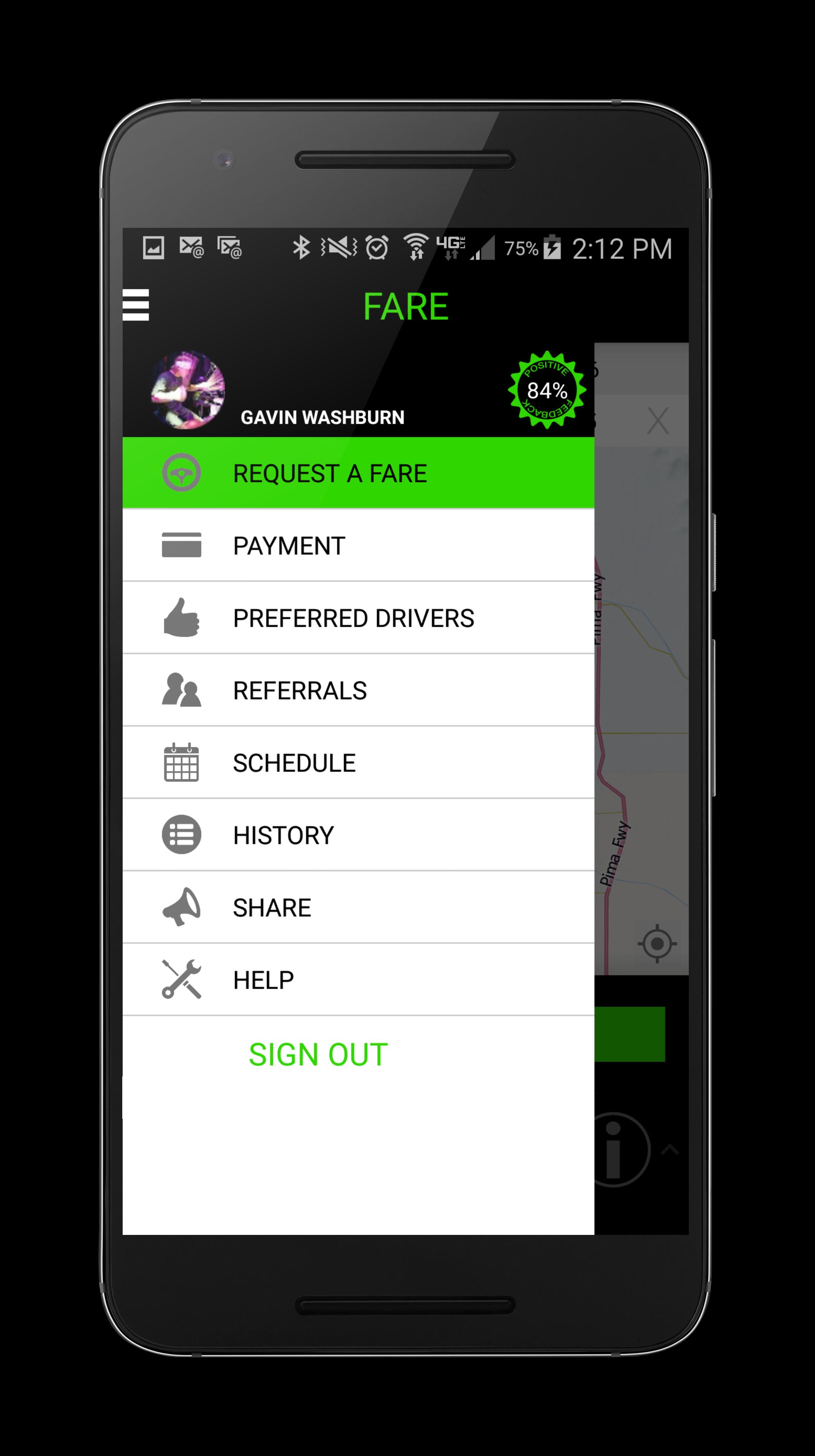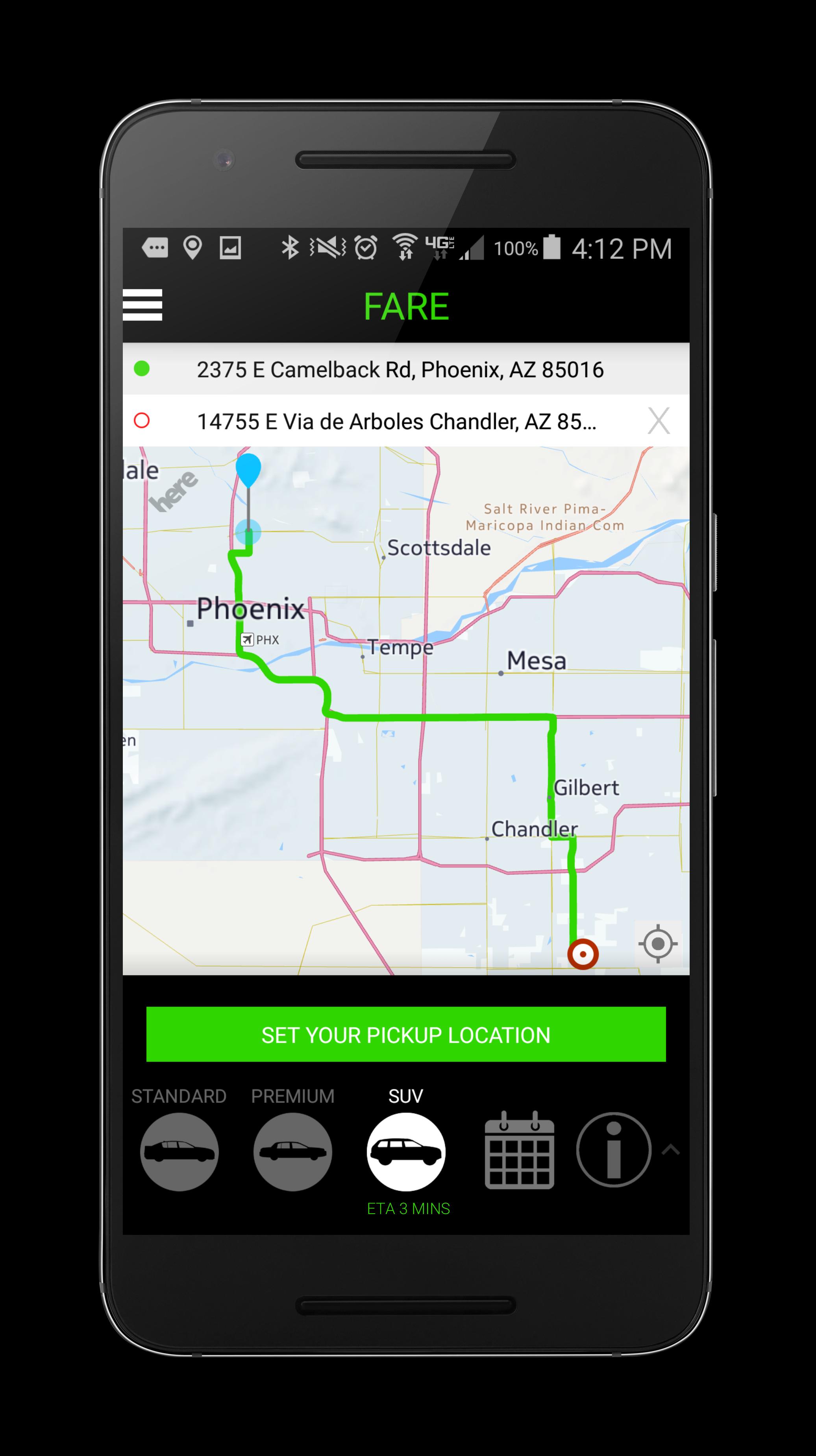 • Fordern Sie jederzeit mit der FARE -App einen Ride on Demand an, und Ihr vertrauenswürdiger Fahrer wird in Kürze auf dem Weg sein.