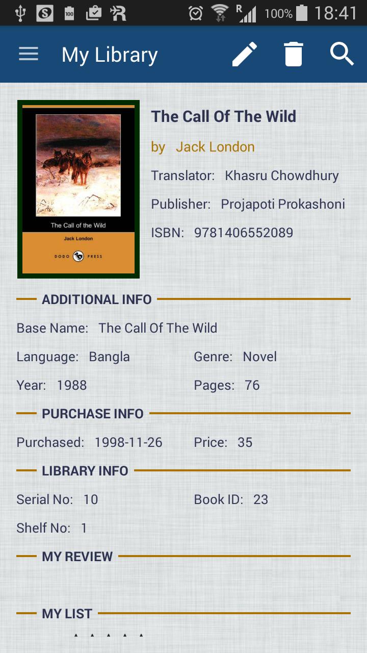 • Derzeit unterstützt nur Englisch, keine Übersetzung ist verfügbar. Sie können jedoch Buchdetails in jeder Sprache speichern (UTF unterstützt)