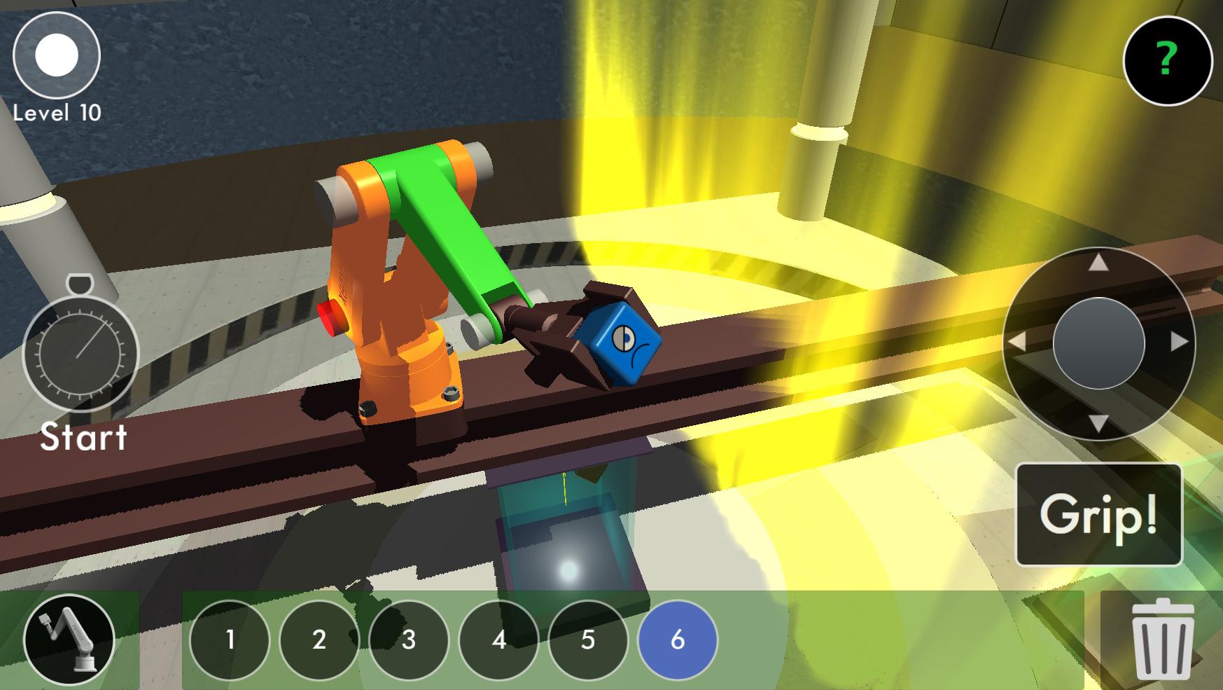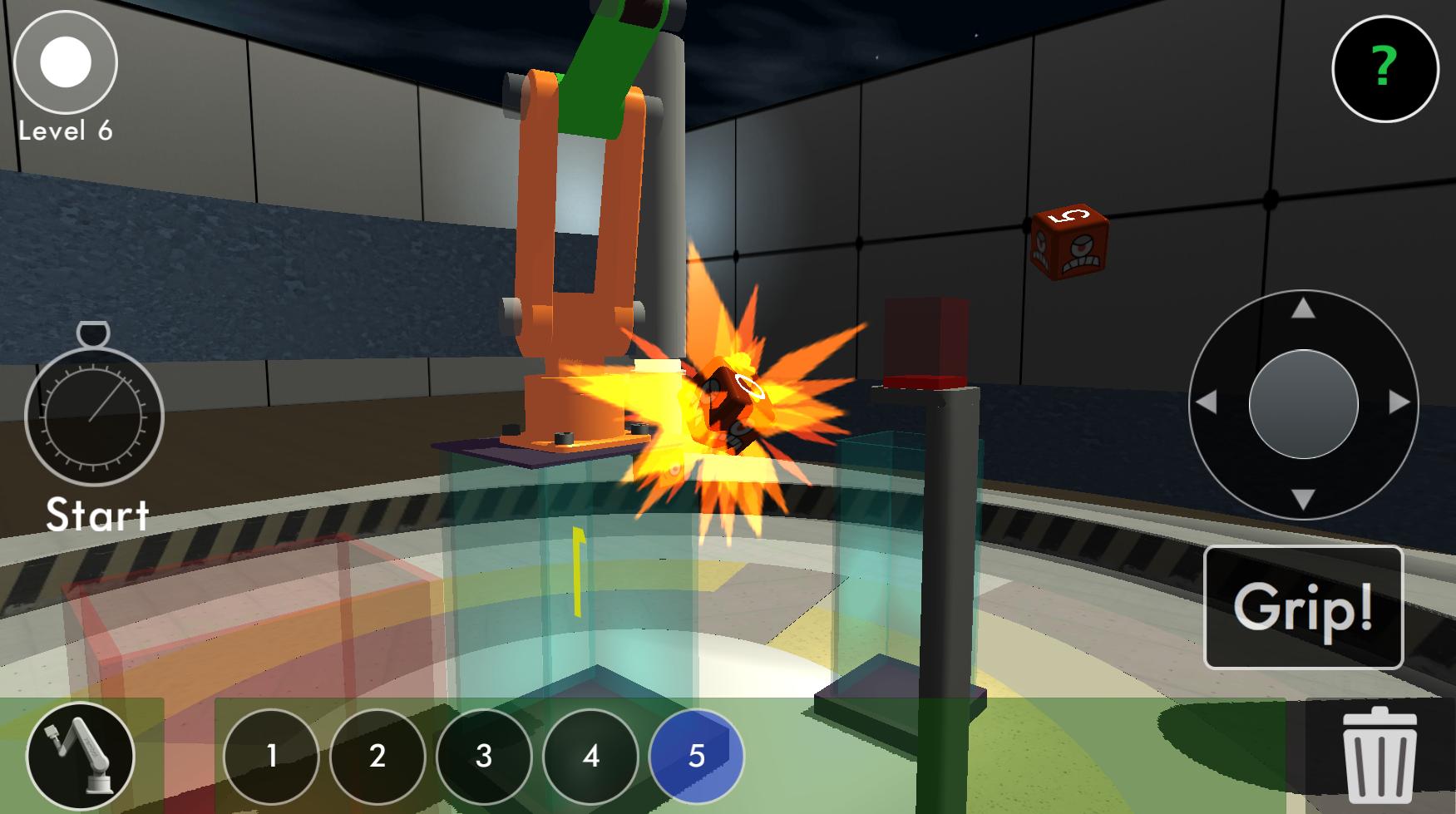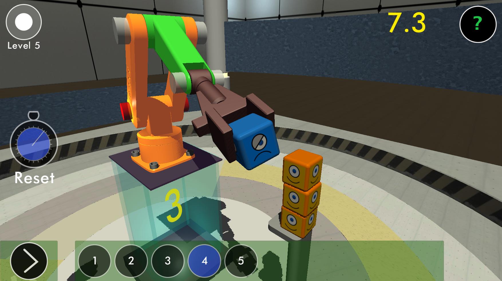 In Qbotik ist es Ihre Mission, alle traurigen Würfel zu retten. Die Würfel haben sich in alle möglichen verrückten Situationen gebracht, und es ist Ihre Aufgabe, ihnen zu helfen. Übernehmen Sie die Kontrolle über den Roboterarm, um die Würfel zu retten! Der Roboterarm verfügt über fünf Freiheitsgrade mit motorisierten Fugen, die Sie direkt steuern oder automatisieren, um schneller zu arbeiten. Schnapp, werfen, stapeln und Würfel ablenken, um sie in Sicherheit zu bringen.