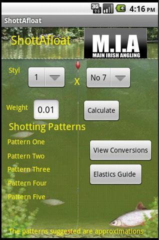 Ein Pole Float Shoting Calculator mit bis zu 5 Schussmustern für Ihren ausgewählten Schwimmer.
