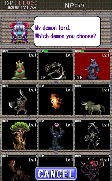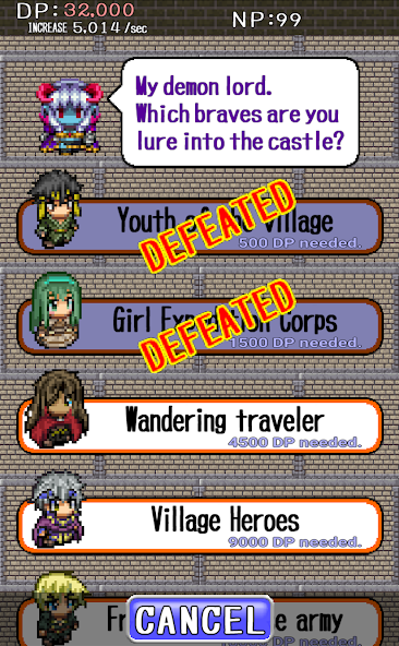 2. You can gain 'Demonic Power' by defeating humans! The 'Demonic Power' allow you extend Demons Castle and Level up monsters.