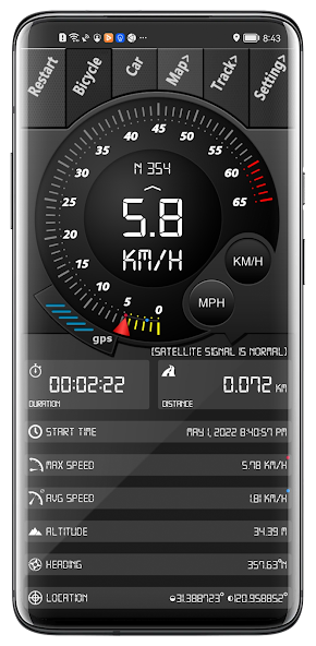 Digital Dashboard GPS can track your speed,distance,time,location and also can get start time,time elapsed,avg speed,max speed,altitude...
