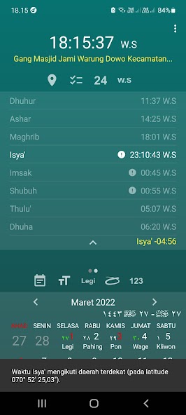 Istiwak time(WIS), Prayer times, Hijri calendar, Qibla compass, Holidays, etc