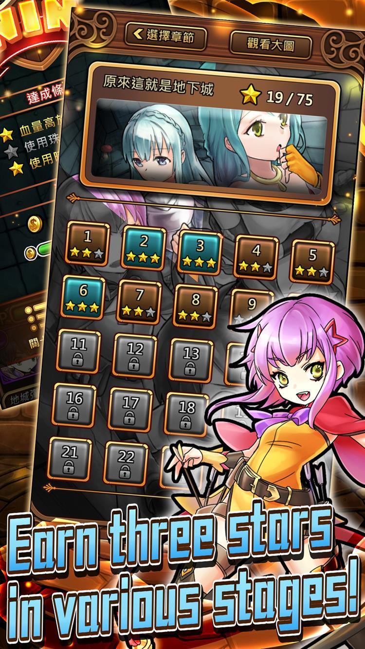 Each stage is a room in the dungeon where the game proceeds with characters and heroes transforming into "pinballs" on the pinball platform. By launching the balls, players help these characters as they hit and bounce in the dungeon stages to defeat monsters, activate hidden switches, and break out of traps to solve the difficult puzzles in each stage.