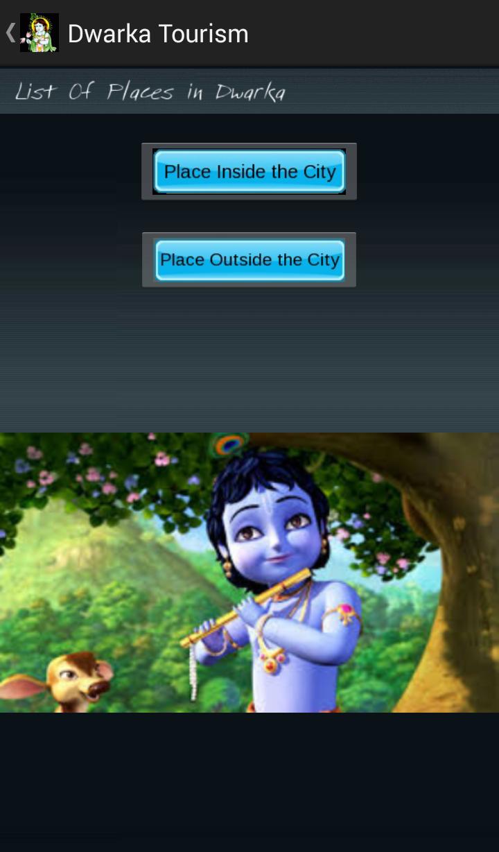 And providing details of Tourist places(categories into two parts place inside city and place outside city) , Temple Timing(Morning timing and Evening Timing), Hospitals, Medical stores, Maps, Gallery of Dwarka(Lord Krishna or Dwarkadhis) city.