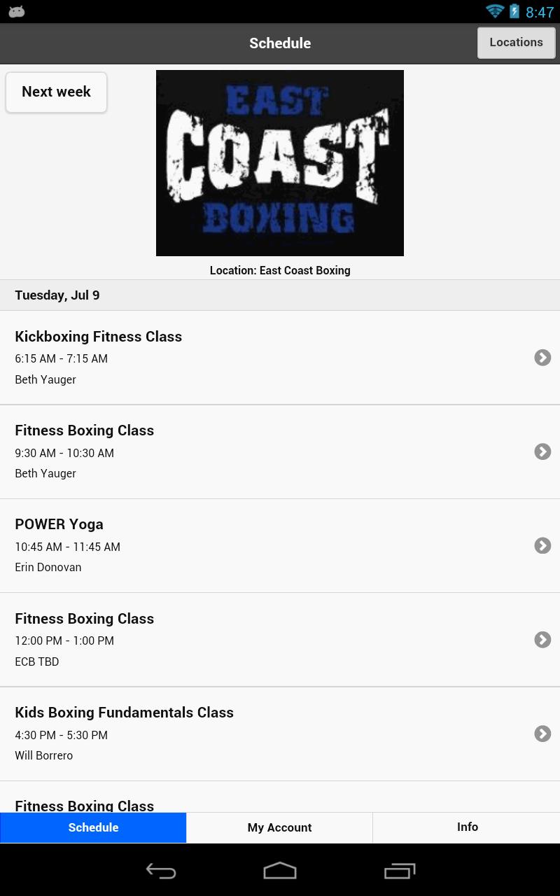 Are you a member of the greatest Fitness Fighting Gym on the planet? Then you need the East Coast Boxing App! Instantly check the class schedule, view your purchases, sign up and purchase personal training, and more. It's free so download it today.