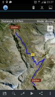 Create the path by tapping the map. Different modes of path creating are available: direct, driving, walking and bicycling. Direct mode draws straight lines between points. Driving, walking and bicycling modes are able to find and follow roads between points. Driving mode finds routes using the roads network. Walking mode uses pedestrian paths and sidewalks (where available). Bicycle mode uses bicycle tracks and preferred streets (this is currently available only in US). Every point shows altitude in preferred unit. Distance between first and last point is shown on the top of the screen.