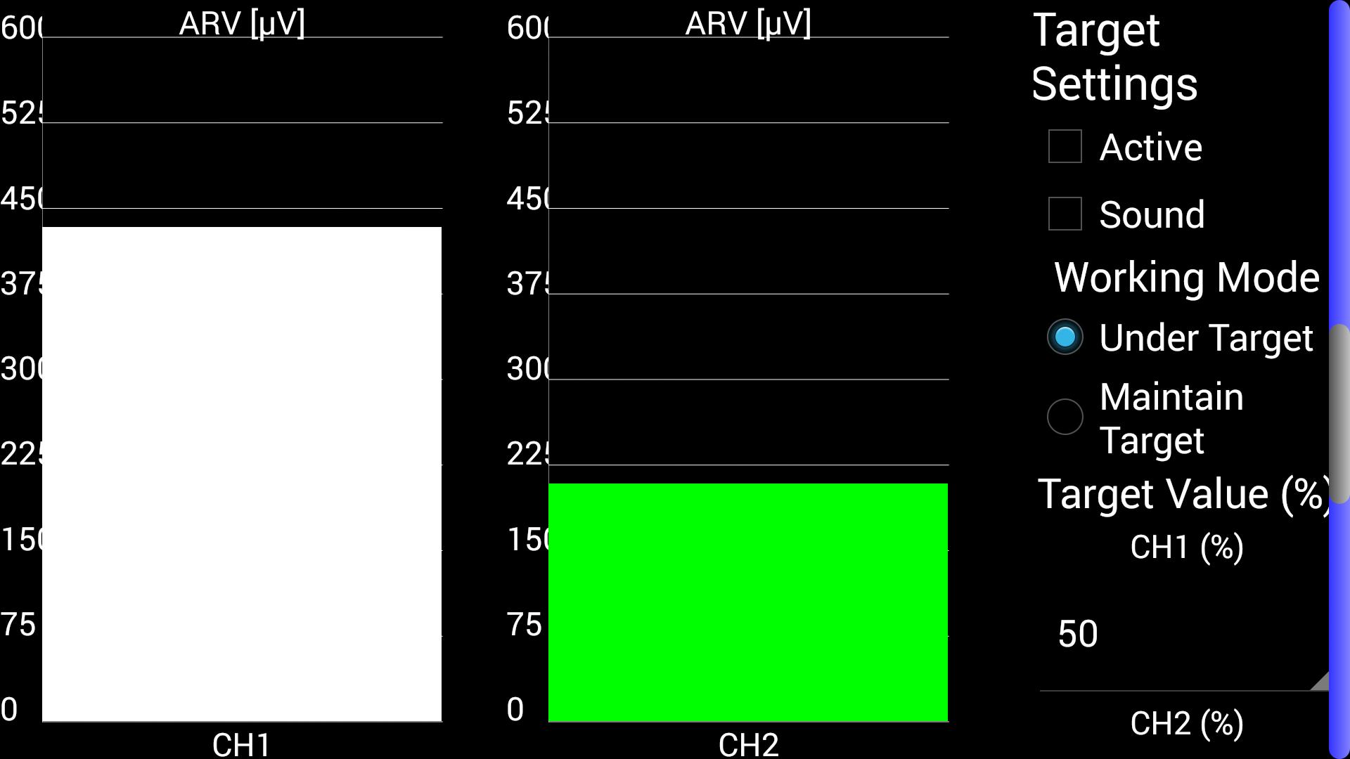 4 channels EMG Biofeedback application to show the ARV (Average Rectified Value) of the EMG signals with BARS.