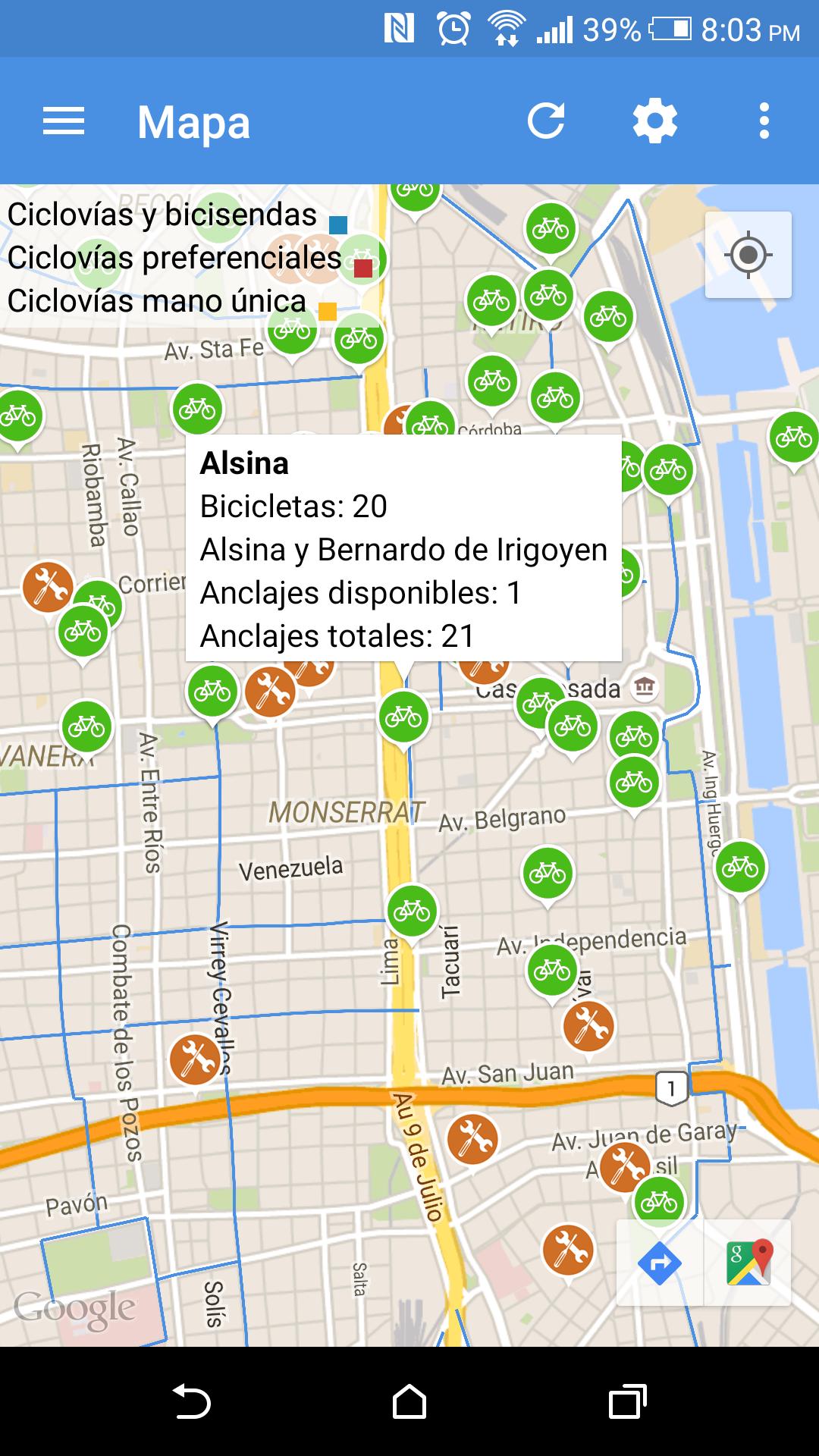 - See in real time the availability of ecobicis and anchors at each station (public bicycle system of the city of Buenos Aires).