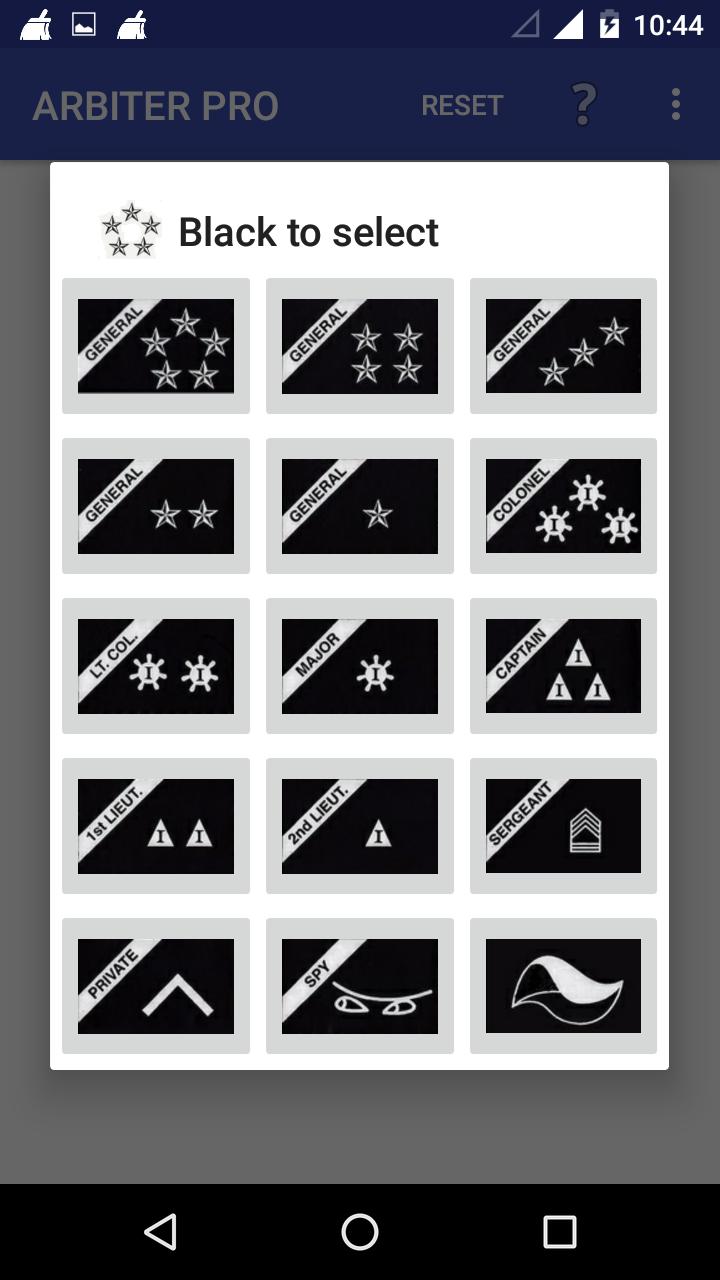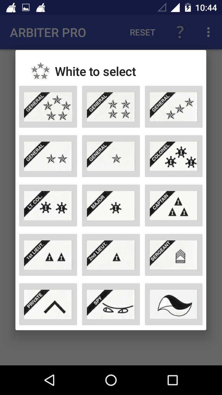 Esta aplicación es un árbitro electrónico para el juego del juego de mesa de los generales. Con esta aplicación, ya no hay necesidad de encontrar una tercera persona para actuar como árbitro.