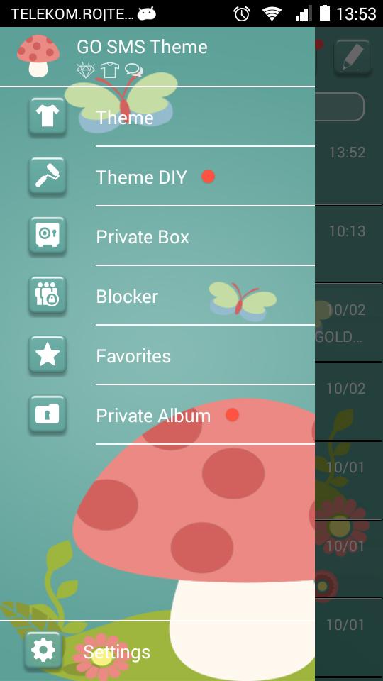 Haga coincidir su deseo de esconderse de su vida aburrida y normal y vivir en un mundo de maravilla diferente. Tenga una aventura en este momento y personalice la apariencia de su diseño de SMS con el nuevo tema de hongos Pro SMS Pro y vea cómo su teléfono inteligente o tableta se transformará en un portal que lo llevará a un mundo nuevo y mejor soñado. Explore este nuevo reino de maravillas con el nuevo tema Go SMS Pro Mushrooms. ¡Descárguelo hoy, es completamente gratis!