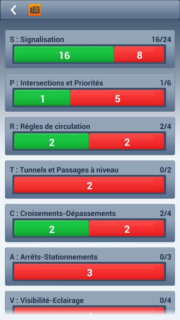 Pruebe su conocimiento de forma gratuita gracias a una serie de 20 preguntas sobre letreros de carretera y una serie de 40 preguntas en el modo "Examen blanco", de acuerdo con el examen oficial.