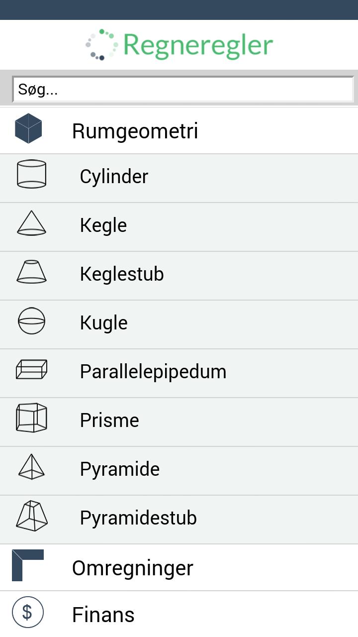 Con la aplicación " Regneregler ", obtienes ayuda con las matemáticas cotidianas y puedes actualizar tus habilidades matemáticas con una visión general rápida de fórmulas y conceptos.